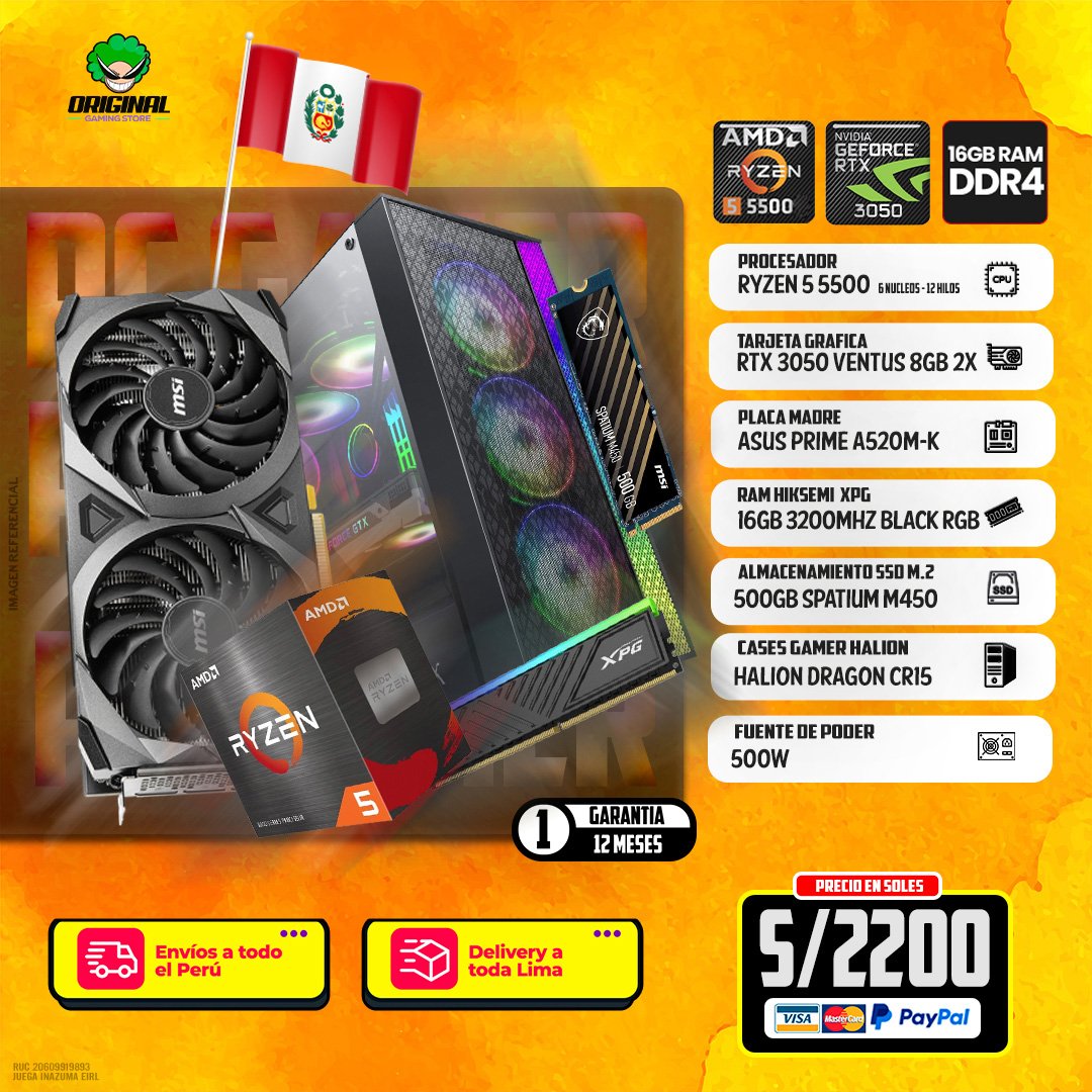 PC GAMER ECO R5 5500 +RTX 3050 6GB + 16 RAM DDR4