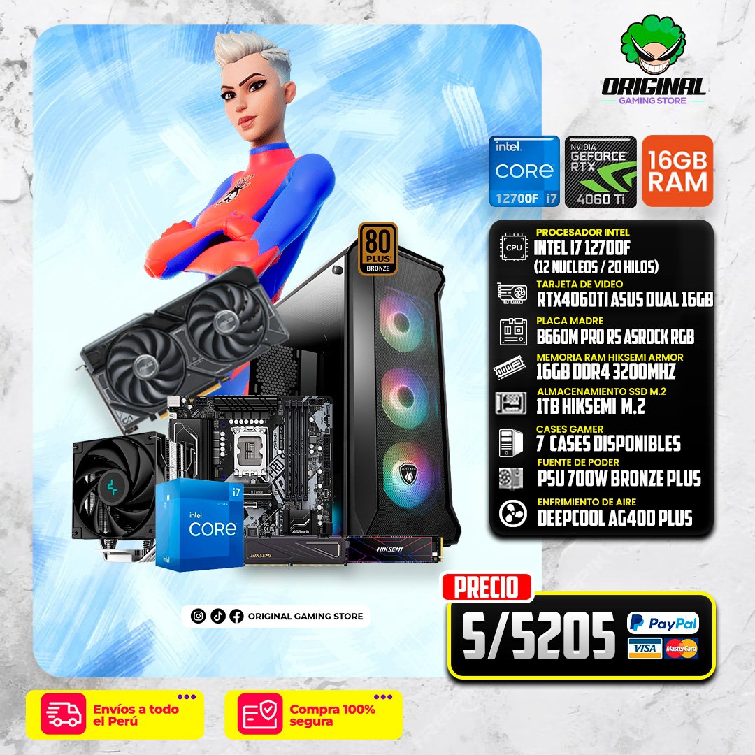 PC STREAMER INTEL i7 12700F + RTX4060TI 16GB ASUS